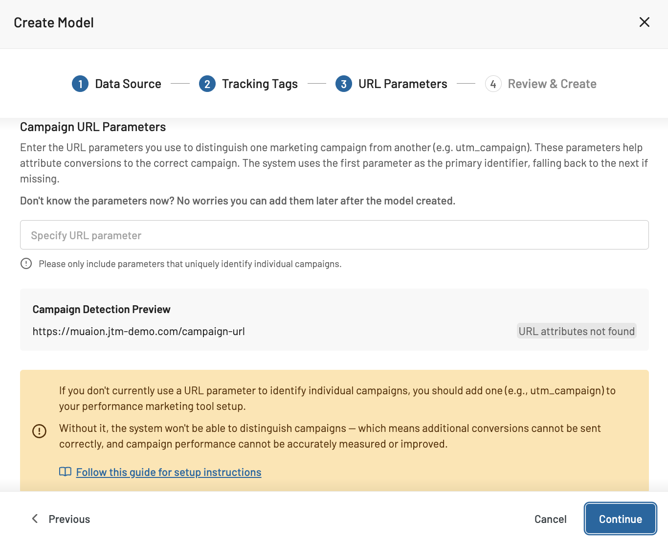 4. **Define URL parameters** to distinguish one marketing campaign from another.