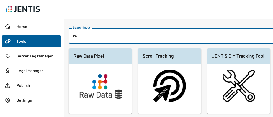 After you logged into your JENTIS DCP you will find the link to the tools on the left side.