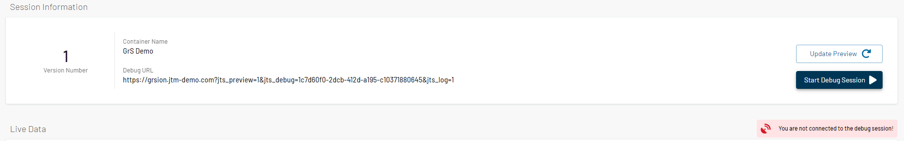 Sometimes, the debug session may fail to connect due to various reasons, such as page redirection based on the user's country or other factors. Despite initiating the debug session, it remains disconnected, hindering the ability to effectively monitor and troubleshoot tracking debugging.